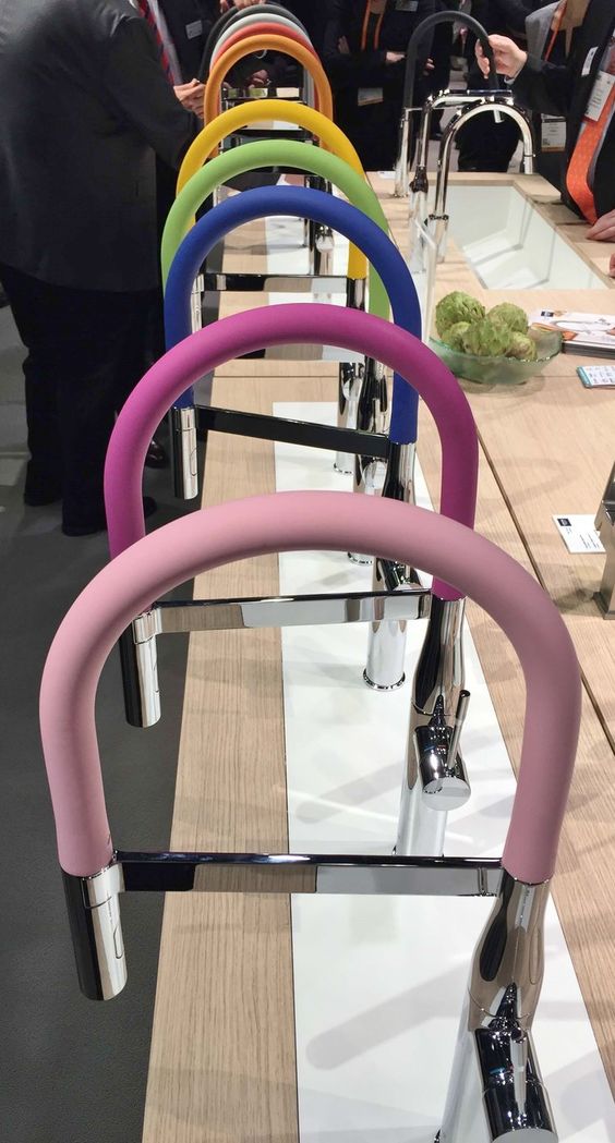 "I have also been wanting to use one of these colorful Grohe faucets! (Maybe a kids playroom bar?!)"
